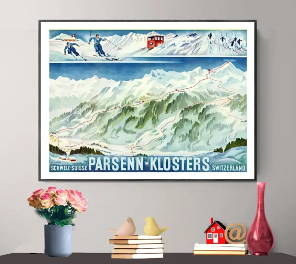 Parsenn Klosters Switzerland Vintage Travel Poster Poster Paper Sticker Canvas Print Gift Idea