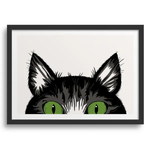 Peekaboo Black Cat Art Print Close Up Black Cat Eyes Print