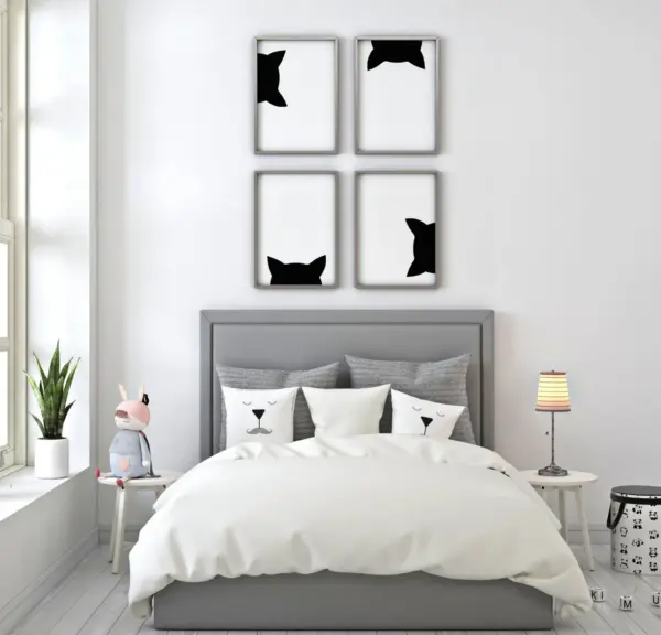 Peeking Black Cat Prints Set Of 4 Cats Wall Art Minimalist Posters Gifts For Animal Lover Various S