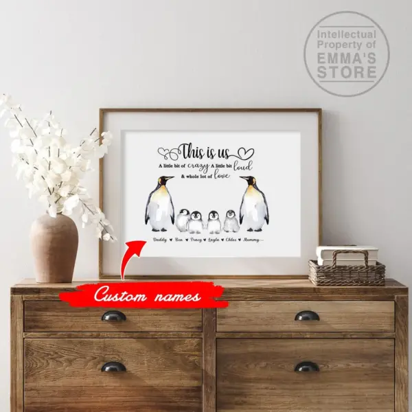 Penguin Family Watercolor Art Wall Art Penguin Gift For Family Penguin Loves Gift Family Name Sign Animal Lovers Gift Penguin Family Print