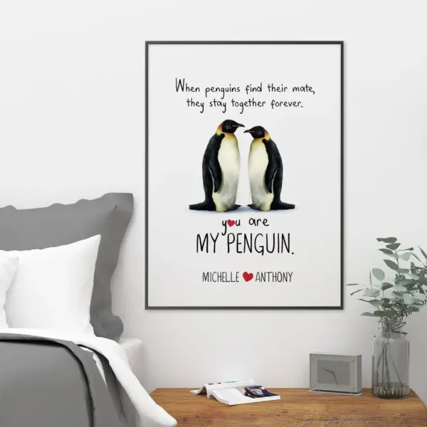 Penguin Love Poster Gift For Wife Husband Couple With Names You Are My Penguin Poster