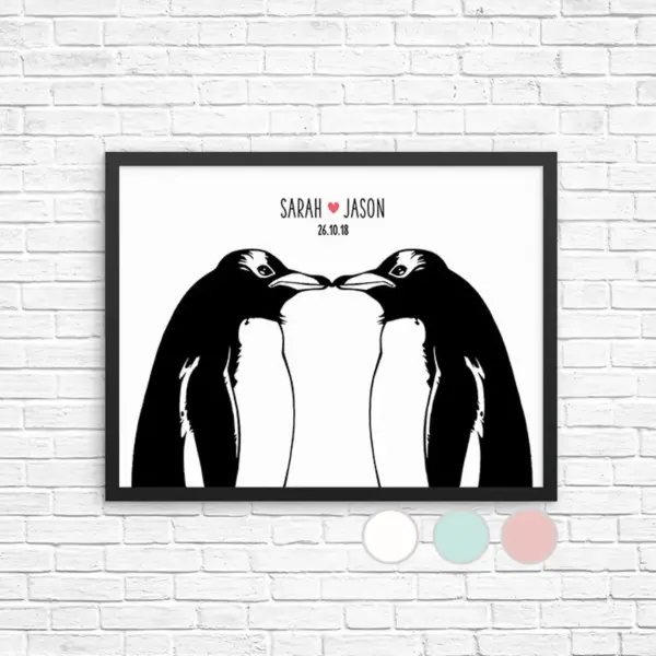 Penguin Wall Art Custom Name Print Personalized Couple Wedding Decor Animal Sign Poster Newlywed Valentine Housewarming Gift