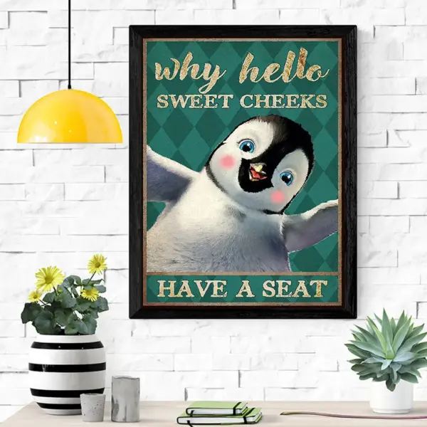Penguin Why Hello Sweet Cheeks Have A Seat Bathroom Decor Poster Cutie Penguin Penguin Lover Animal Lover Vertical Poster No Framed