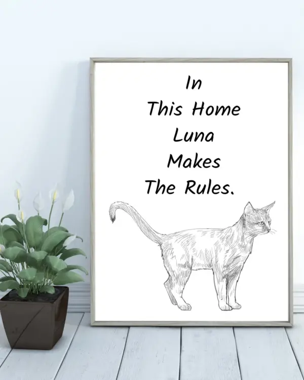 Personalised Cat Gifts Funny Cat Print Customised Cat Poster Cat Owner Wall Decor Gift For Cat Mom Dad Cat Poster Illustration