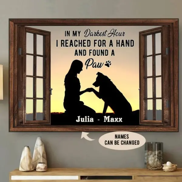Personalised Dog And Girl Poster In My Darkness Hour I Found A Paw Dog Print Wall Hanging Home Sign Dog Lover Gift Animal Lovers Gift