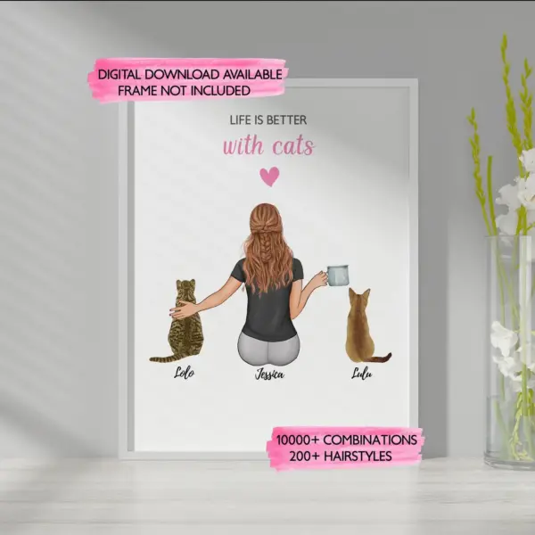 Personalised Gift For Cat Mom Personalised Print Poster For Frame Gift For Cat Owners Or Crazy Cat Lady Add Upto 4 Cats