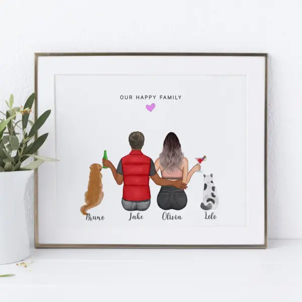 Personalised Pet Owner Couple Gift Dog And Cat With Couple Portrait Pet Lover Poster Print Gift For Couple Housewarming Gift