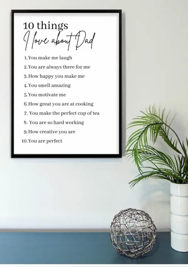 Personalised Things I Love About Dad Poster Print Couple Love Family Anniversary