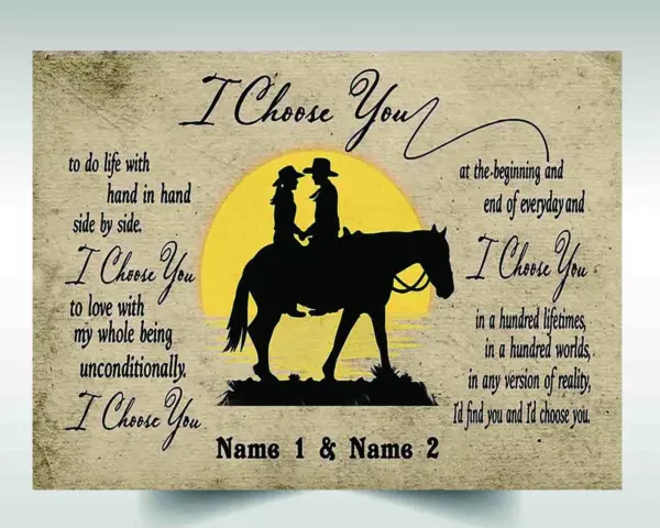 Heartfelt canvas poster celebrating unconditional love and partnership, perfect for couples and horse lovers seeking meaningful home decor.