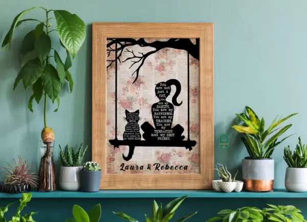Personalize Poster Love Cat Poster Cat And Girl Vintage Wall Art