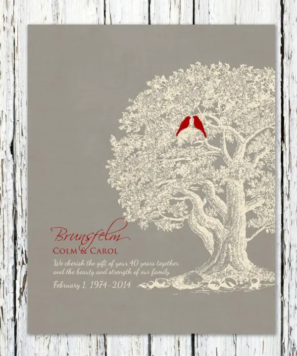 Personalized 40Th Ruby Wedding Anniversary Idea Gift Custom Tree With Initials In Love Heart Poster Print