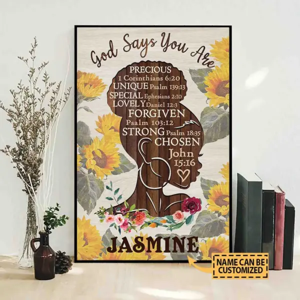 Personalized Afro God Says You Are Poster Personalized Black Girl Sunflower Girl Wall Decor