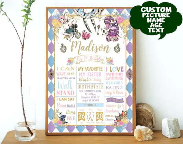 Alice in Wonderland 1st Birthday Poster - Pink Floral Onederland Girl