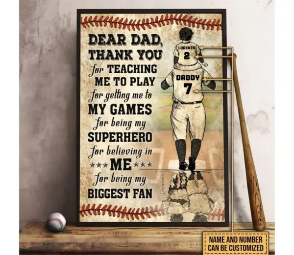 Personalized Baseball Dad And Son Poster Dear Dad Thank You For Teaching Me Print Love You Dad Art Baseball Dad Print Gift For Dad S Day