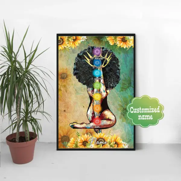 Personalized Black Woman Yoga Canvas Art Black Girl Praying Poster Print Afro Queen Wall Art Black Queen Wall Decor Sunflower Wall Decor