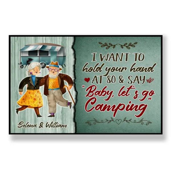 Personalized Camping Couple Poster Custom Names Happy Camper Camping Van Decor Anniversary Gift Husband And Wife Camping Partners