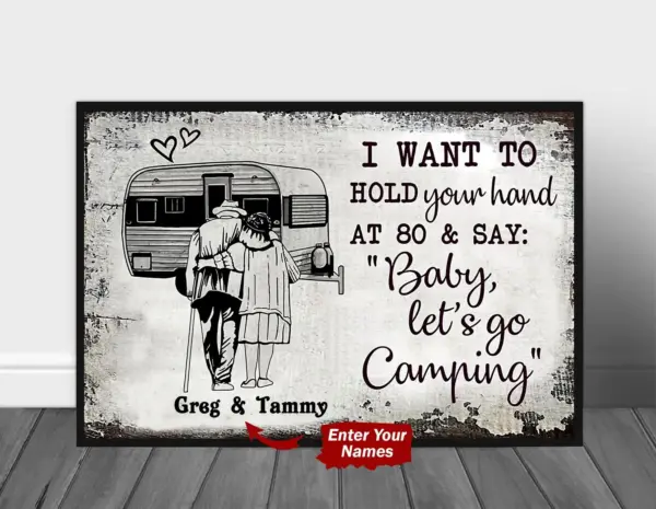 Personalized Camping Couple Poster Sketch Hold Your Hand Customized Poster Camping Poster Gift For Her Gift For Him Unframe 2107