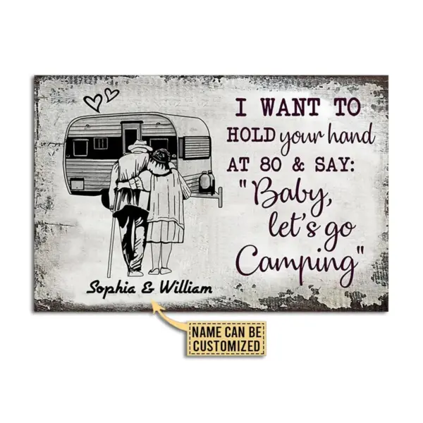 Personalized Camping Sketch Hold Your Hand Customized Poster Love Camping Vintage Poster Hiking Couple Poster Husband And Wife Camping