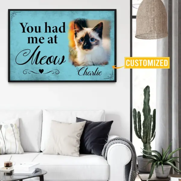 Personalized Cat Canvas Art You Had Me At Meow Poster Custom Cat Photo Wall Art Cat Lover Gifts Cat Mom Gifts Cat Mom Home Decor