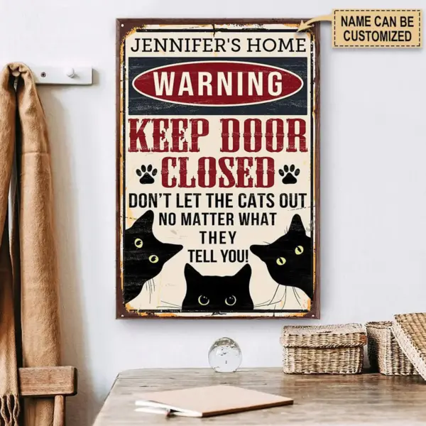 Personalized Cat Warning Keep Door Close Poster