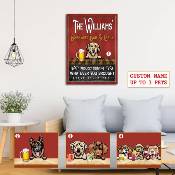 Personalized Custom Bar And Grill Dogs Poster Dogs Poster Dog Lovers Gift Dinking Poster