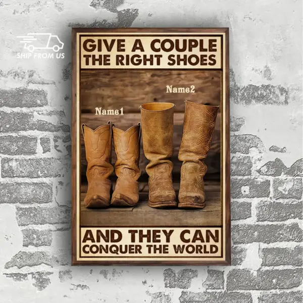 Personalized Custom Names Poster Cowboy Cowgirl Shoes Couple Poster Valentine S Day Gifts Give A Couple The Right Shoes Poster Home Decor