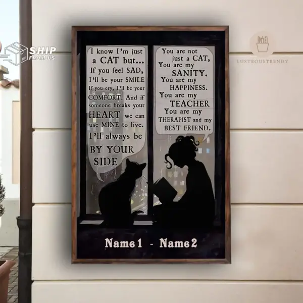 Personalized Custom Names Poster Girl And Cat Poster Cat Lovers Gifts Wall Art Print Home Living Decor Poster