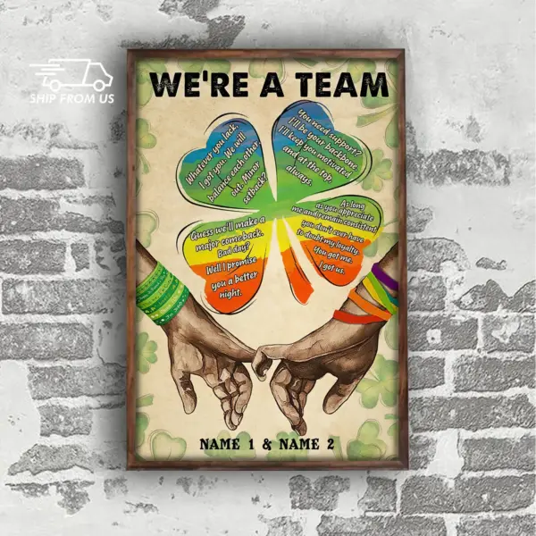 Personalized Custom Names Poster Lgbt Pride Poster Irish Couple Poster We Re A Team Poster Home Living Decor Poster