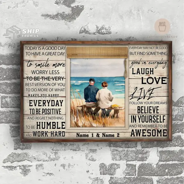 Personalized Custom Names Poster Valentine S Day Gifts Old Couple At The Beach Poster Today Is A Good Day Poster Home Living Decor Poster