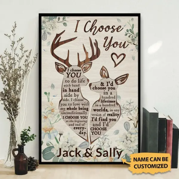 Personalized Deer I Choose You Poster Wall Art Decor Husband And Wife Deer Couple Gift Idea For Your Lover Romatic Art No Frame