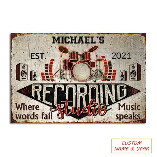 Personalized Drum Recording Studio Horizontal Poster Recording Studio Sign Music Note Sign Custom Musician Gift Gift For Music Lover