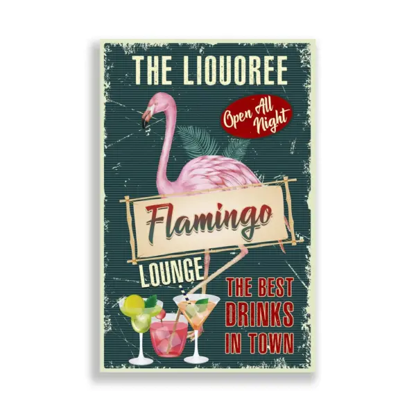 Personalized Flamingo Lounge Poster Coctail Bar Decor Summer Vibes Cocktail Glasses Flamingo Lover Gifts Customized Your Name