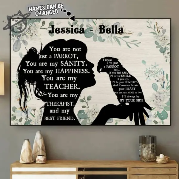 Personalized Girl With Bird Poster You Are Not Just A Parrot Poster Parrot Print Bird Lover Gift Birder Gift Wall Hanging Animal Lover