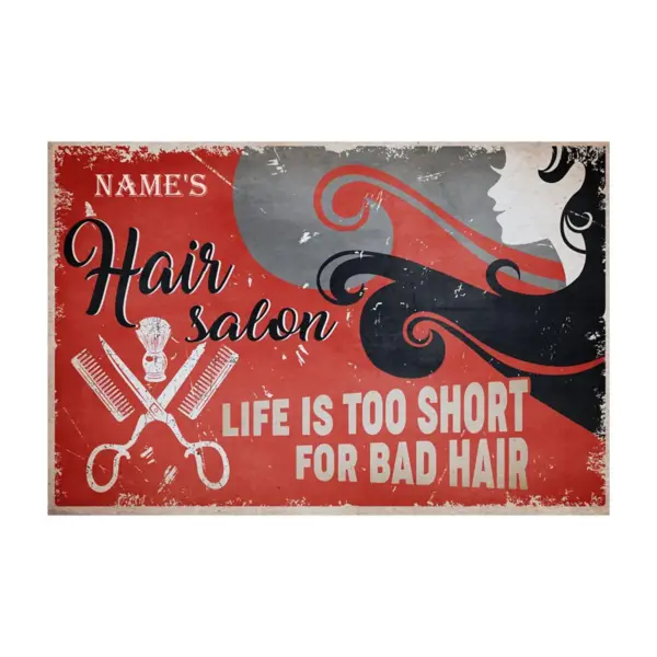 Personalized Hair Salon Poster Life Is Too Short To Have Bad Hair Vintage Poster Hair Salon Decor Wall Art Hairstylist Gift