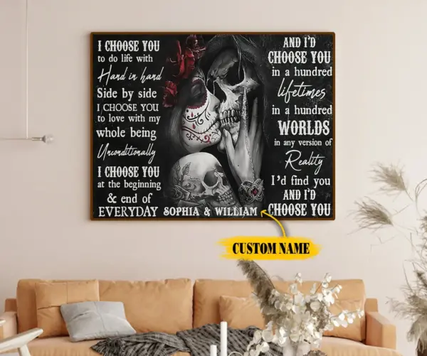 Personalized I Choose You Skull Couple Kissing Poster Canvas Couple Canvas Gift For Lover Wife And Husband Family Canvas Home Decor