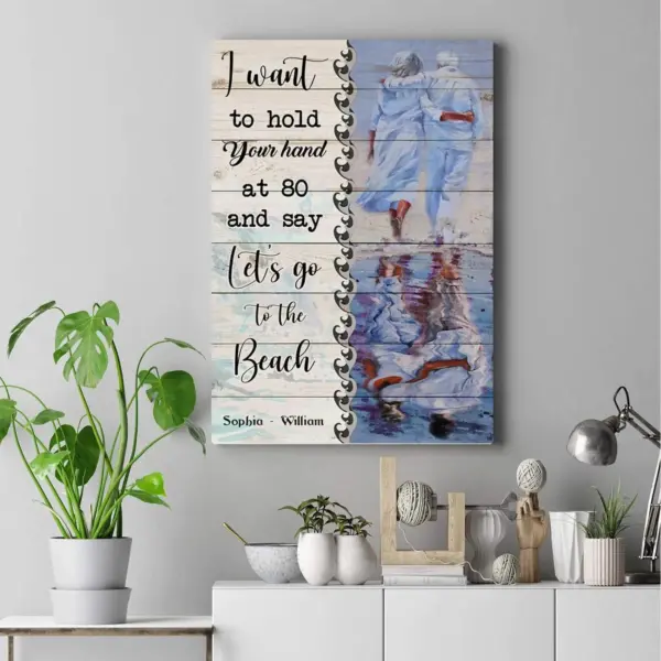 Personalized I Want To Hold Your Hand At 80 And Say Let S Go To The Beach Poster Canvas Gift For Lover Family Canvas Home Decor
