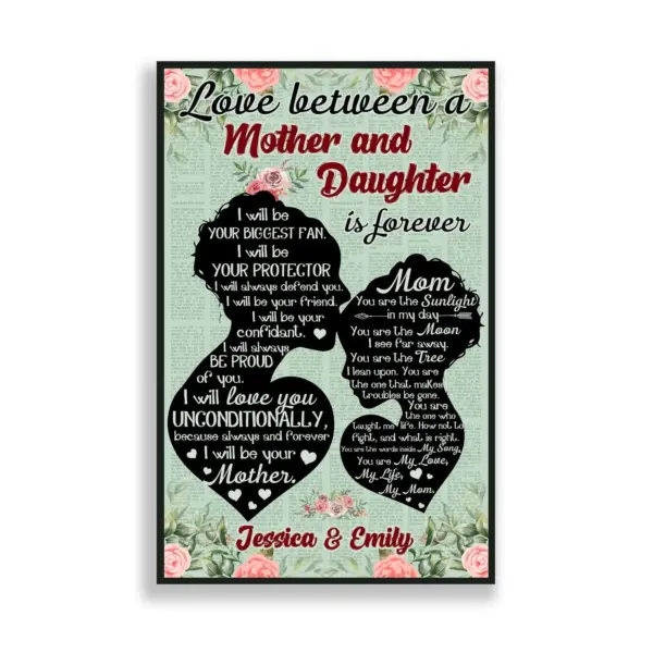 Personalized Love Between Mother And Daughter Poster Mothers Day Gift Motivational Wall Art Gift For Mom Page Decor Customized Name