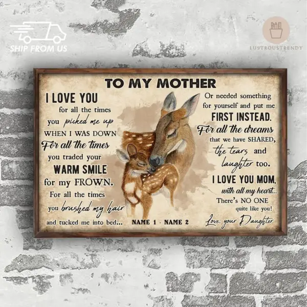 Personalized Name Deer Mother And Daughter Poster Mother S Day Gifts To My Mom From Daughter Gifts Home Living Decor Poster