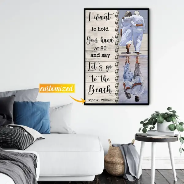 Personalized Old Couple Canvas I Want To Hold Your Hand Poster Anniversary Gift Ideas Wedding Gifts Custom Couple Name Wall Art
