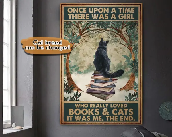 Personalized Once Upon A Time There Was A Girl Poster Cat Family Art Print Cat Lover Gifts Bedroom Decor Gift For Her Wall Art No Frame