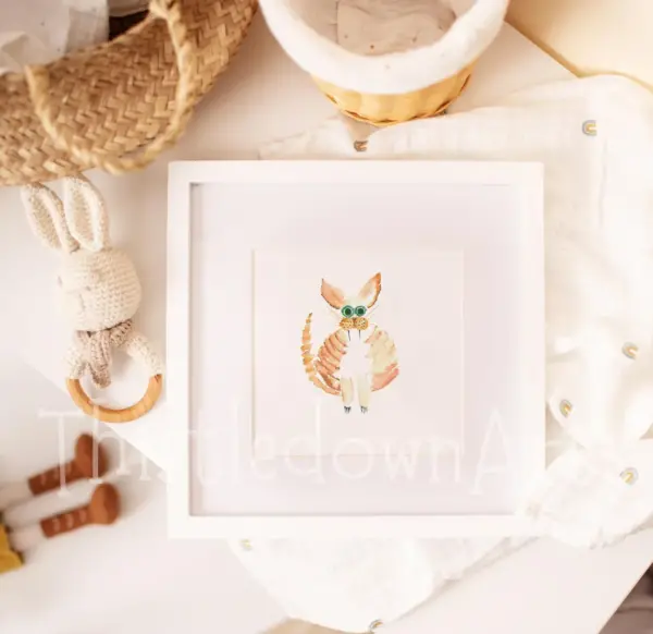 Personalized Quirky Orange Tabby Cat Original Watercolor Art