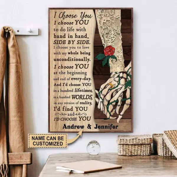 Personalized Skeleton Couple Wedding I Choose You Poster Canvas Skeleton Skull Couple Poster Valentine Couple Gift Home Decor