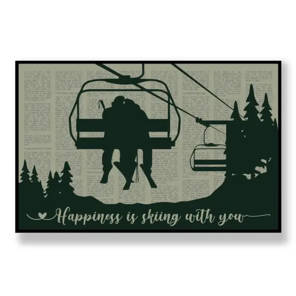 Personalized Skier Lift Couple Poster Winter Skiing Customized Couple Name Anniversary Gift Couple Home Decoration Ski Lift Lovers Gift