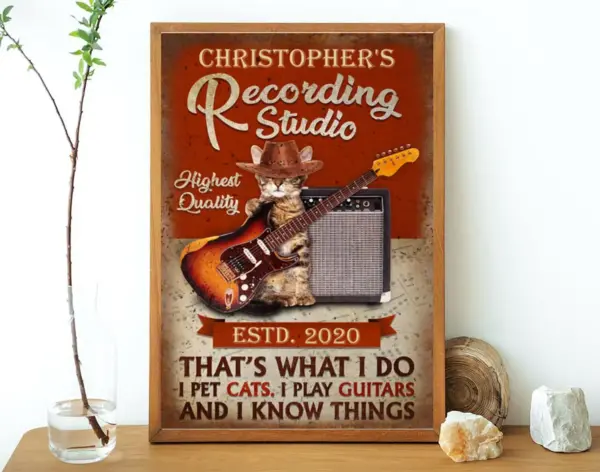 Personalized That S What I Pet Cats I Play Guitars I Know Things Music Lovers Vertical Poster No Framed