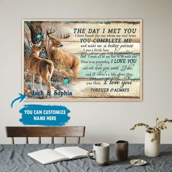Personalized The Day I Met You Deer Couple Poster Canvas 2021 Valentine Gift For Lover Wife And Husband Family Canvas Home Decor
