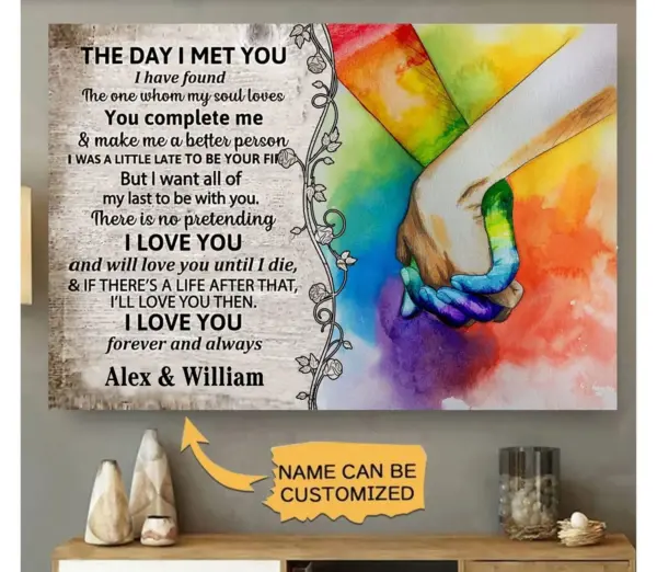 Personalized The Day I Met You Lgbt Rainbow Poster Couple Hand In Hand Wall Art I Love You Sweet Poster Lgbt Couple Poster Home Decor