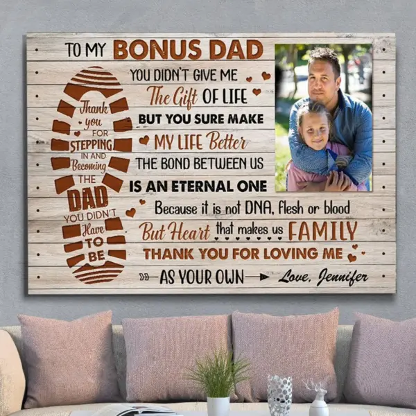 Personalized To My Bonus Dad Canvas Thank You For Becoming The Dad You Didn T Have To Be Print Fathers Day Gift For Stepdad