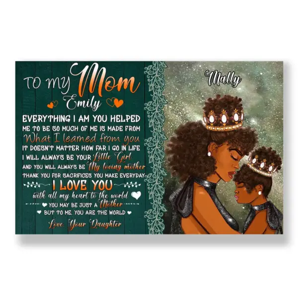 Personalized To My Mom Poster Black Mom And Daughter Wall Art Mothers Day Gift Afro Mom And Girl Black History Month Customized Names