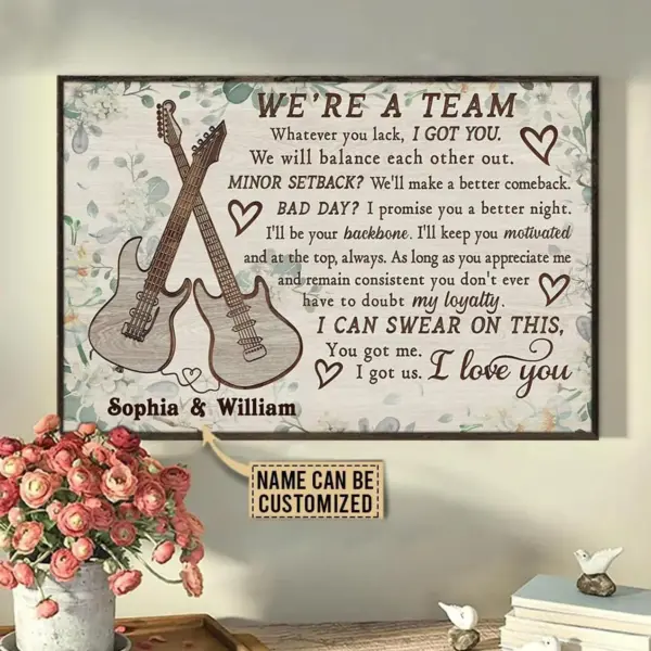 Personalized We Re A Team Poster Canvas Guitar Poster Valentine Gift For Wife Husband Music Decor Home Decor Custom Poster Print