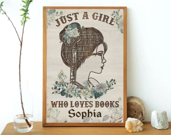 Personalized Wood Reading Just A Girl Vertical Poster Book Lover Gift No Framed